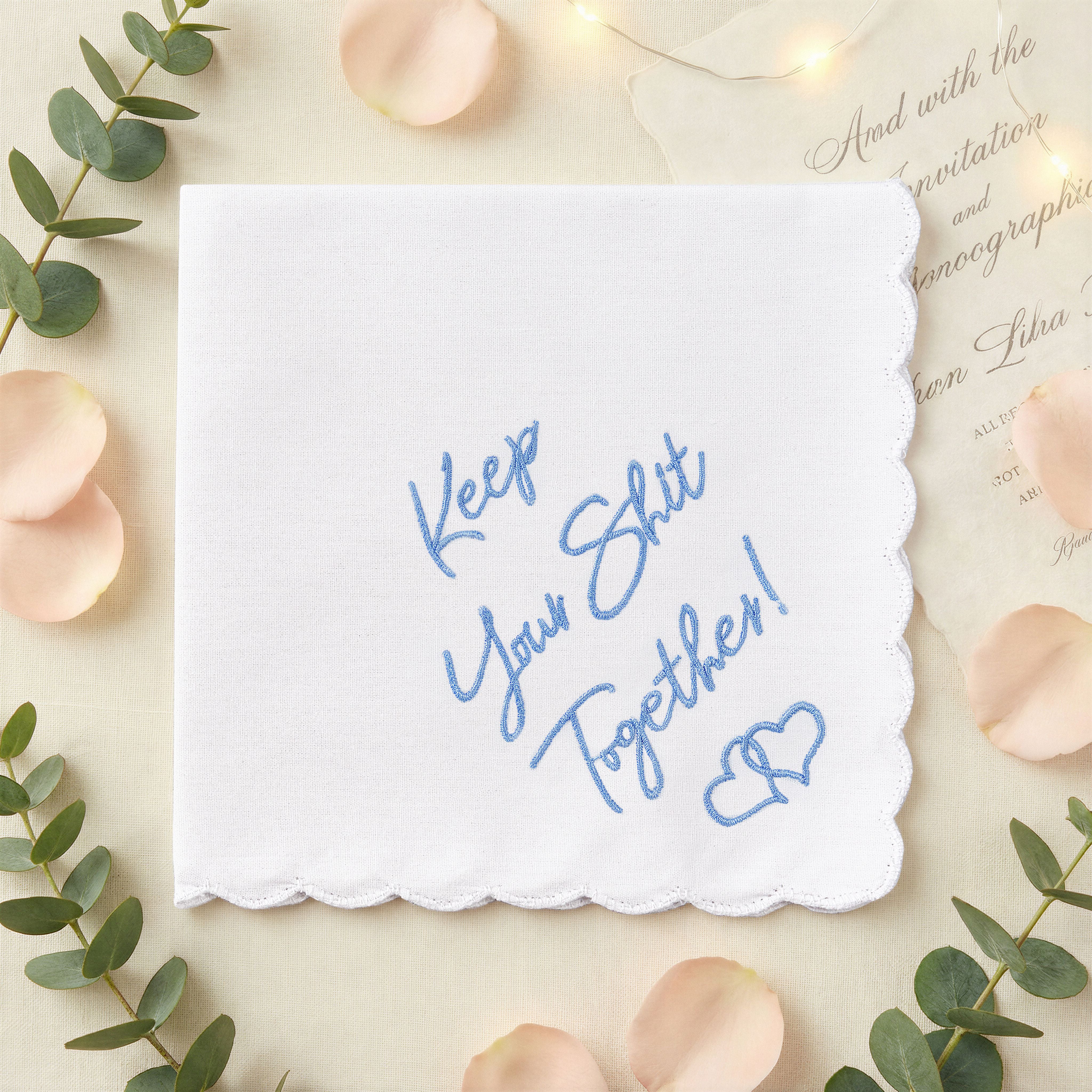 Over 19,000 couples have used our ‘Keep Your Sh*t Together’ hankie to turn ugly-cry energy into happy tears and laughter.